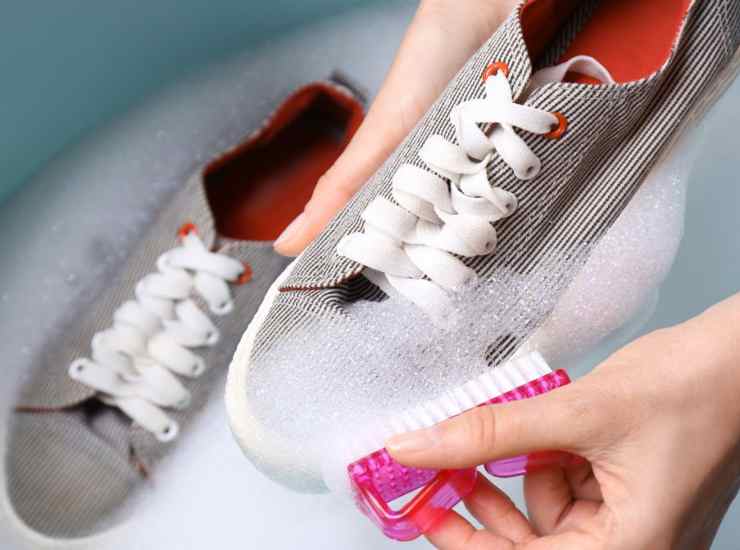 Per ogni paio poi destinato ad essere messo a posto, esegui una pulizia profonda e soprattutto attenta che inizia spazzolando via lo sporco e passa al lavaggio solito. Puoi lavarle in lavatrice ma assicurati prima di strofinarle con uno spazzolino e un mix di acqua e bicarbonato specie se parliamo di calzature bianche, vedrai che torneranno come nuove. Per il lavaggio in lavatrice, ti consiglio di non superare la temperatura di 40 gradi, poiché rischi di rovinarle e mi raccomando, la centrifuga meglio evitarla o almeno deve essere brevissima.