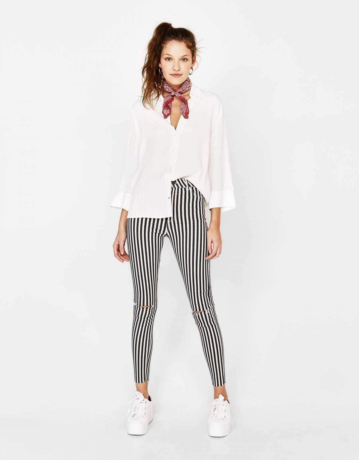 Look con pantaloni in tessuto Bershka