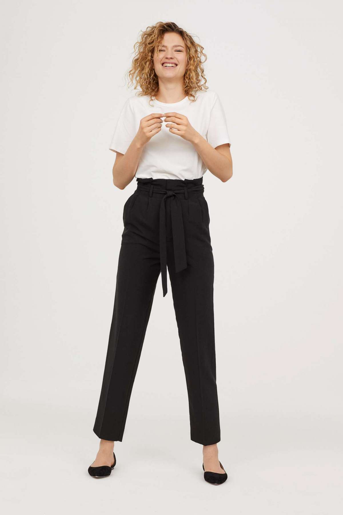 Look con pantaloni neri a vita alta H&M