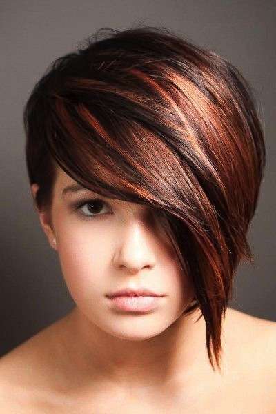 Pixie cut capelli castani con colpi di sole rossi
