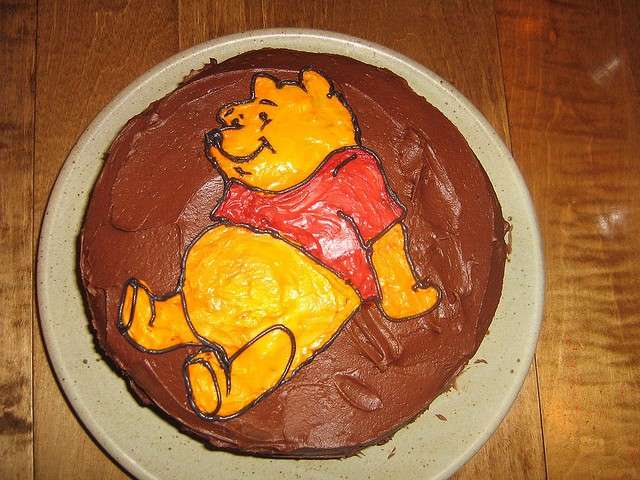 Winnie the Pooh mangia il miele sulla torta