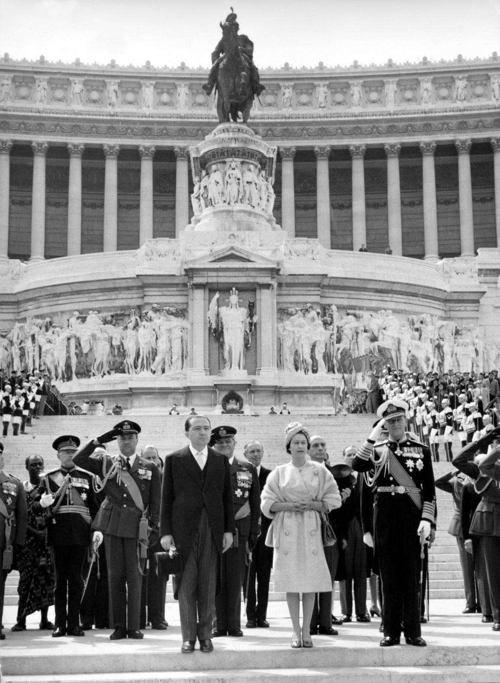La regina accompagnata dall'ex ministro Giulio Andreotti
