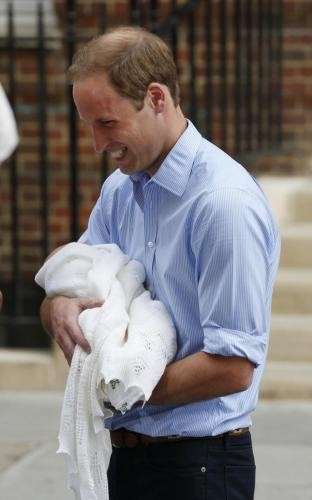 I genitori reali inglesi escono con il Royal Baby dalla clinica
