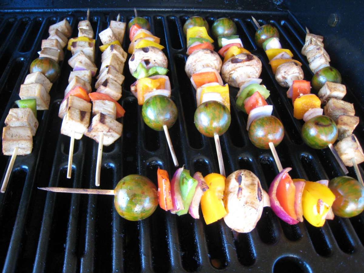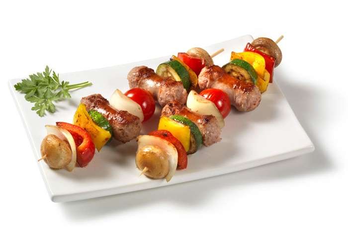 Spiedini di cipolle, pomodorini, zucchine e peperoni