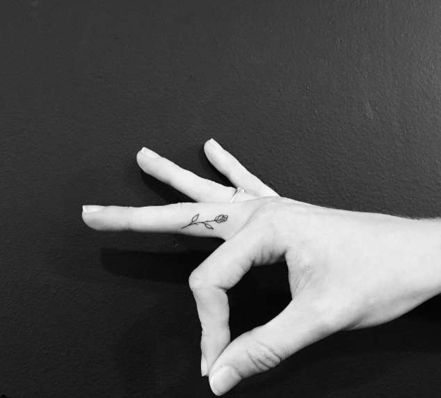 Tatuaggio con piccola rosa rossa nell'orecchio