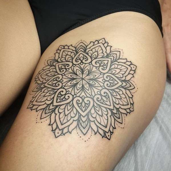 Tatuaggio mandala fiore di loto sulla coscia