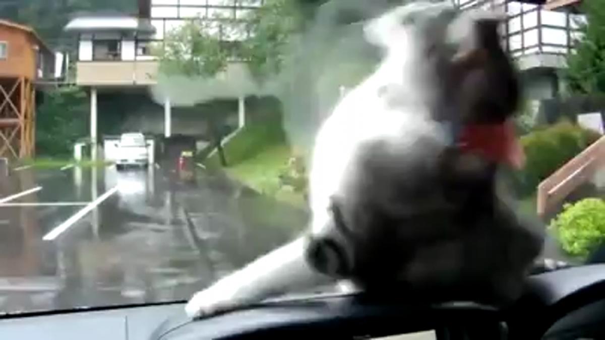 Gatto contro tergicristallo: sfida esilarante